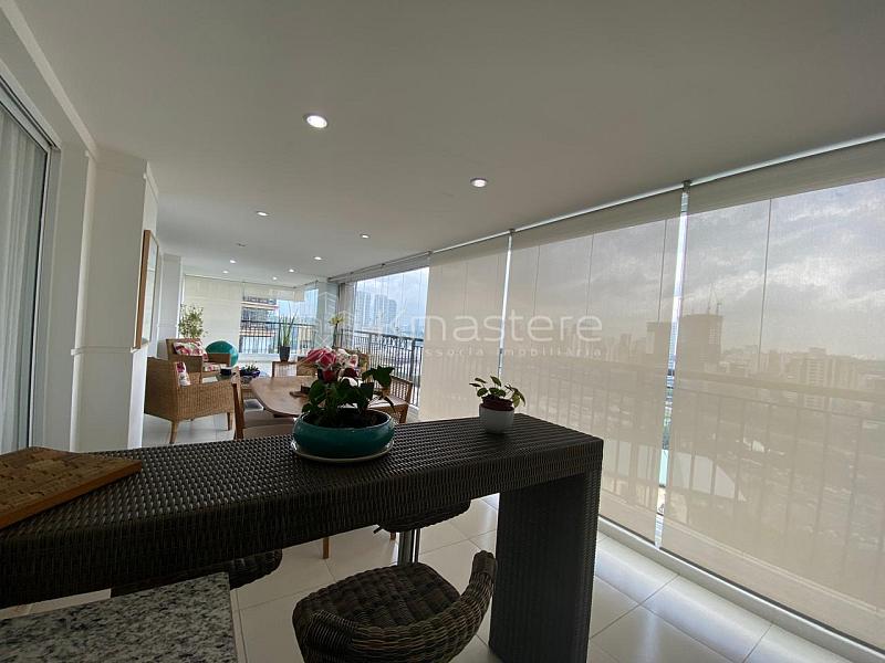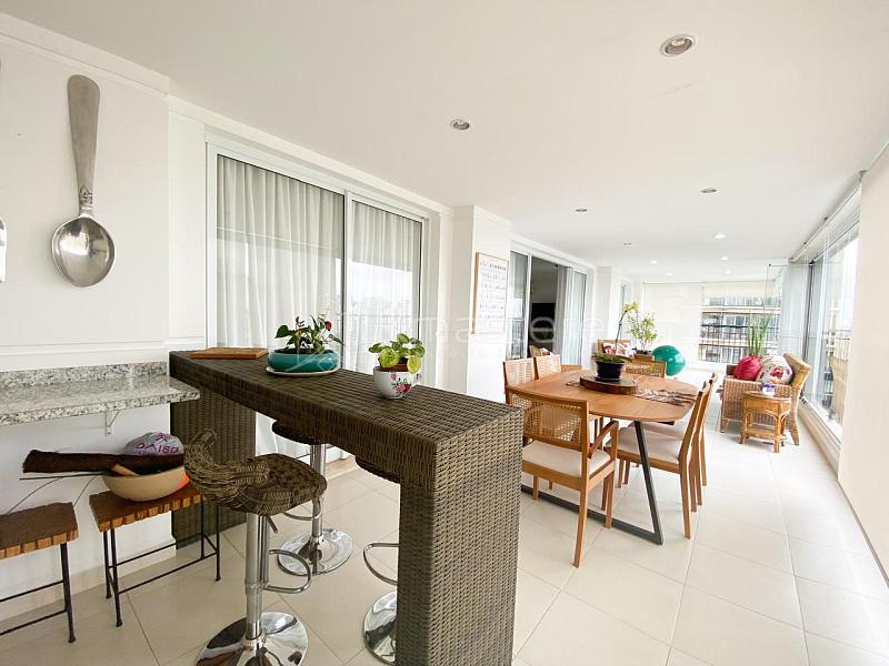 • Este amplo imóvel possui 247 m² de área privativa, distribuídos em quatro suítes espaçosas, todas equipadas com ar-condicionado e armários embutidos de alta qualidade. A sala de estar é generosa e também climatizada, ideal para receber amigos e familiares com muito conforto. A varanda gourmet, integrada à sala, conta com churrasqueira a carvão, sendo perfeita para momentos de lazer e confraternização.