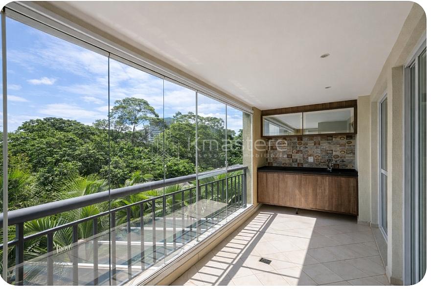 • A varanda oferece uma agradável vista na altura das copas das árvores, proporcionando uma sensação acolhedora de casa.